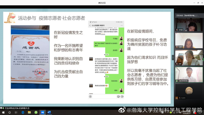 新学年即将开始,为了更好地进行新学年的学生组织工作,保持学院的长期稳定发展,同时为更好地锻炼学生能力,保持学生组织的新鲜与活力,确保学院工作更高效地开展。8月11日下午6时,控制科学与工程学院在线上进行了学生组织负责人的选聘工作。控制科学与工程学院团委负责人刘林翰老师、17级学生干部及各部门负责人担任此次竞选的评委。