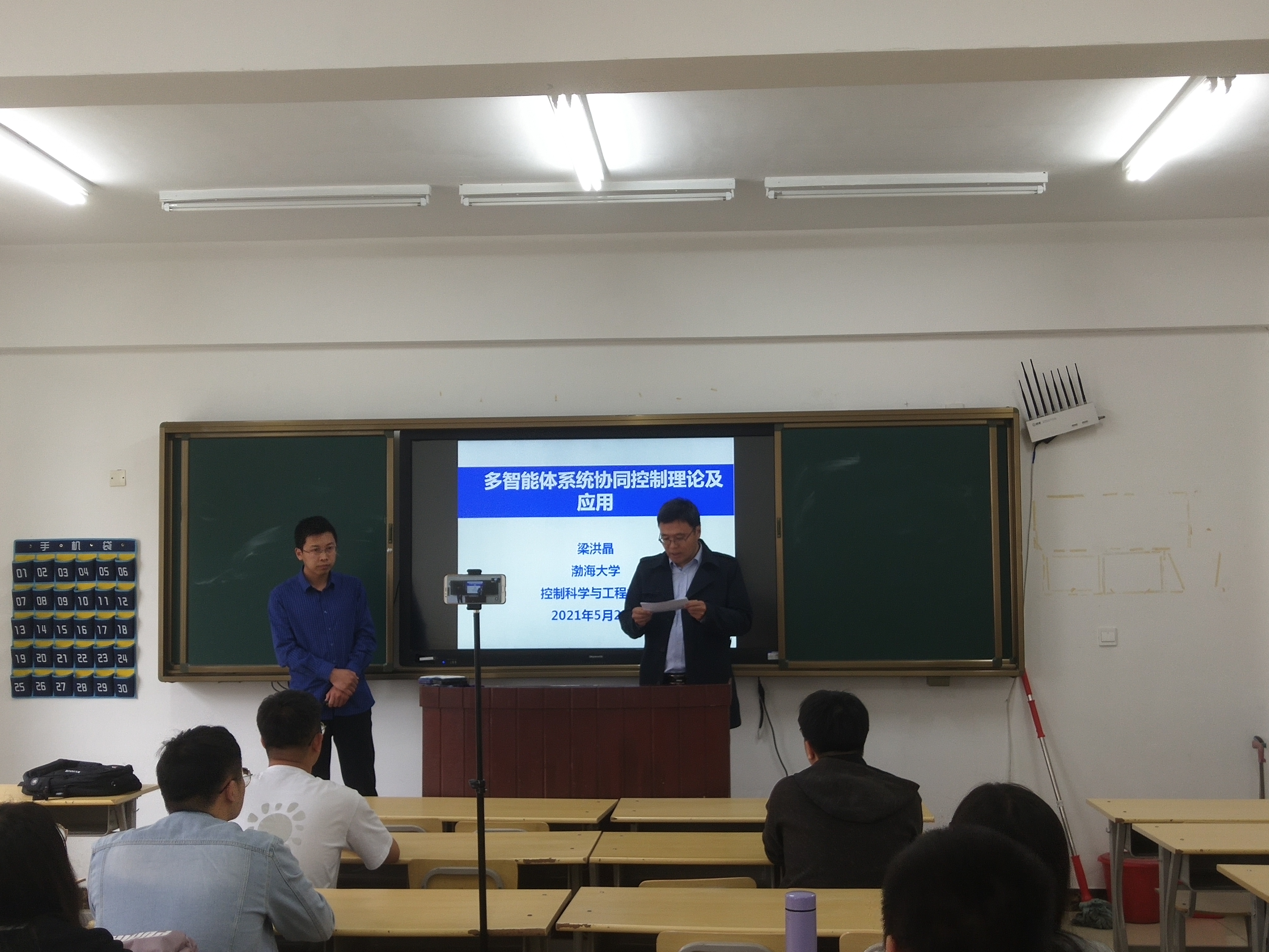 按照渤海大学科技活动周的安排,2021年5月25日下午,在滨海校区工科楼A220教室,控制科学与工程学院梁洪晶副教授为学院师生进行了题为“多智能体系统协同控制理论及应用”的学术讲座。