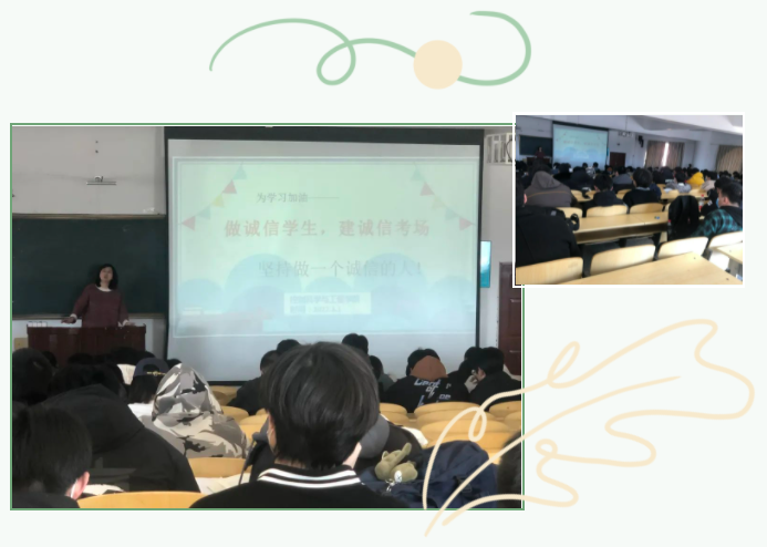 为更好地帮助同学们规范自身行为,诚信应考,提高学生以诚为本、诚信考试的意识,培养学生自检自查能力,控制科学与工程学院于3月1日12:30分在工科楼AJ2召开了以诚信考试为主题的教育大会,本次会议由苏丽娜副院长主持,学院全体需参加缓补考的同学参加了此次会议。