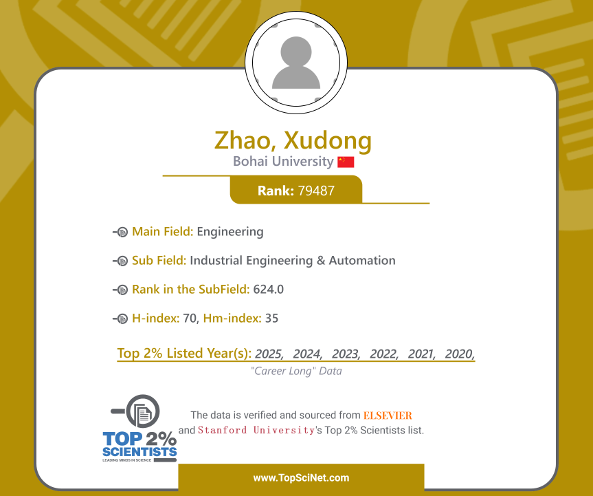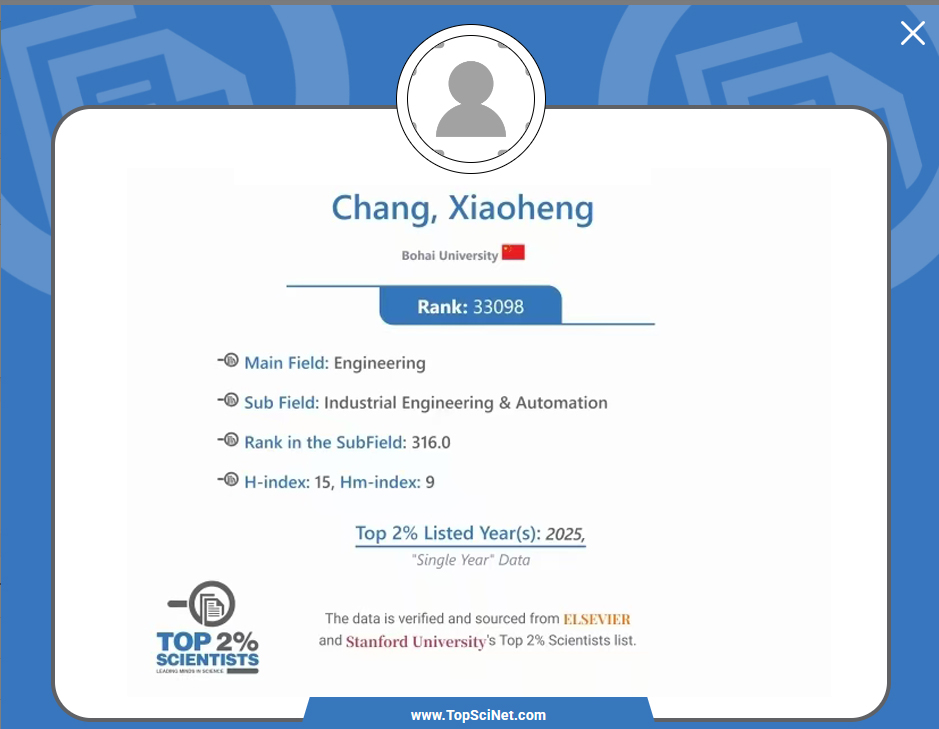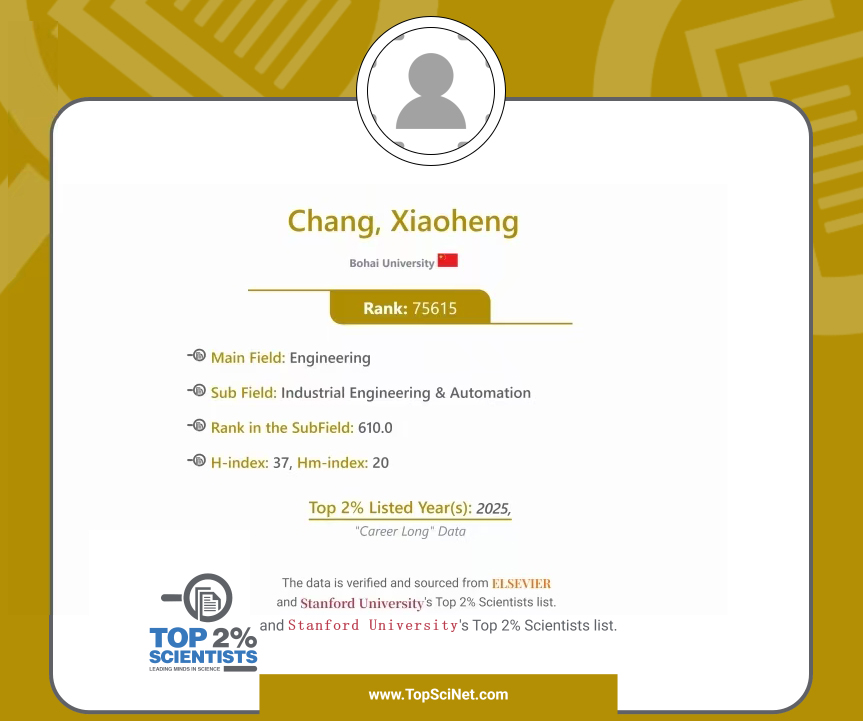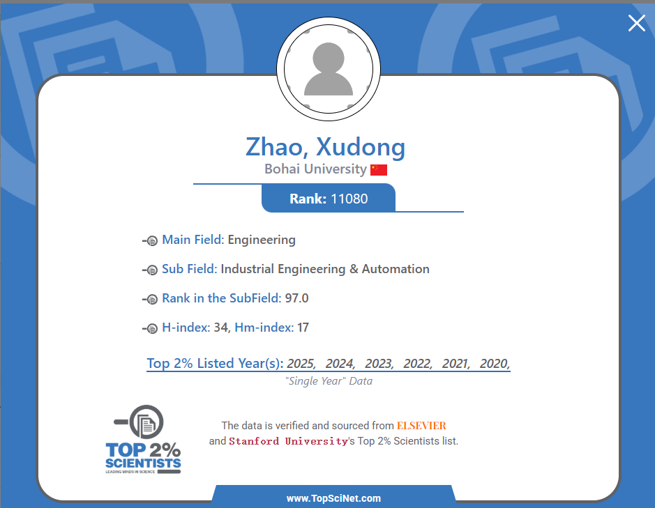 2025年9月19日,斯坦福大学(Stanford University)和国际权威学术出版社爱思唯尔(Elsevier)共同发布的“2025年全球前2%顶尖科学家榜单”中,渤海大学入选学者人数创我校历史新高。我院常晓恒、赵旭东入选“终身科学影响力排行榜”;赵旭东、常晓恒、潘英男、张亮、赵宁5名学者入选“2025年科学影响力排行榜”。