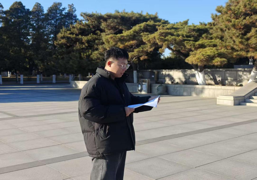 在辽沈战役纪念馆英雄雕塑前,刘春龙同志作为学生党员代表,他分享了自己参观纪念馆的真实感受,“当年的战士与我们年龄相近,却以生命肩负起民族解放的重任;如今的我们,需要将辽沈精神转化为全会所要求的‘实干担当’,在学业上攻坚克难、在实践中扎根成长,让革命理想的火种,燃烧成强国建设的青春火炬。”