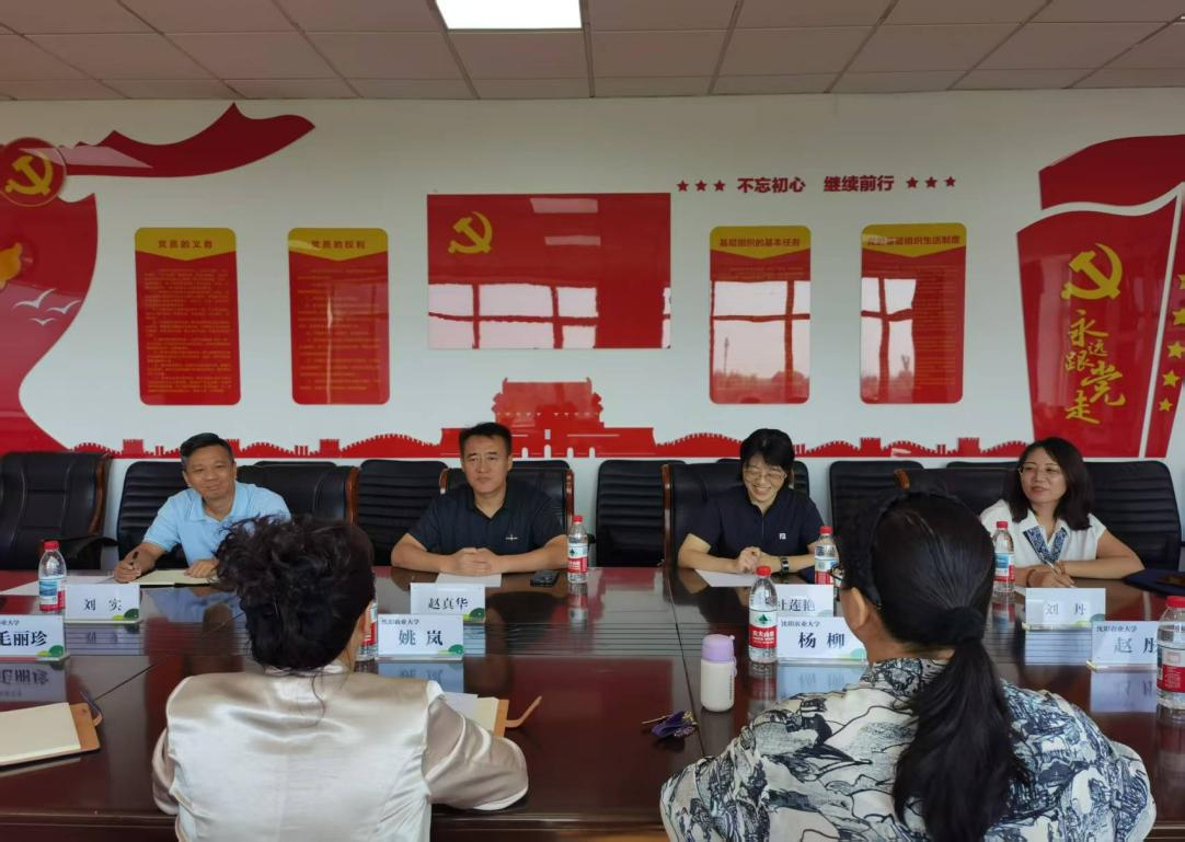 2025年9月12日,部门主任赵真华、副主任杜莲艳、第一教研室主任刘实、第三教研室主任刘丹一行四人到沈阳农业大学外语教学部进行调研交流。沈阳农业大学外语教学部主任兼书记姚岚、副主任毛丽珍、杨柳及教师代表参加座谈。