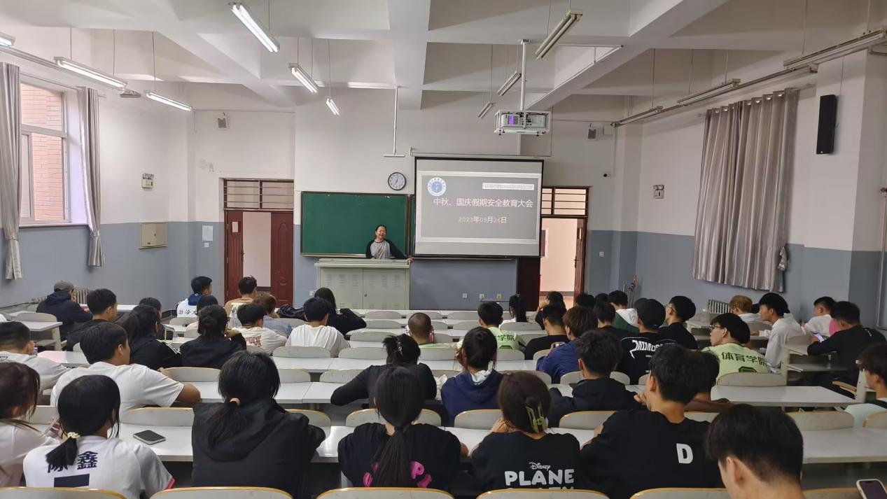 2023年中秋及国庆节假期临近,为切实做好假期期间学生安全教育与管理工作,提高学生的安全防范意识,保障学生安全和身心健康,根据渤海大学《关于中秋节、国庆节假期的温馨提示》要求,9月26日下午,体育学院党总支副书记兼学生院长李迪、团委书记刘东洋分别召开了中秋及国庆节假期安全教育大会。